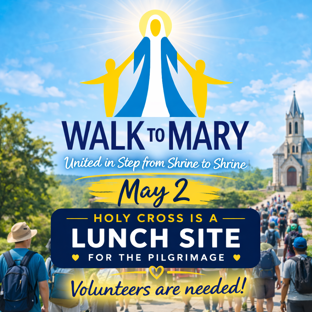 The Walk to Mary is almost here! Join us on Saturday, May 2, as Holy Cross serves as the main lunch stop along this beautiful 22-mile pilgrimage.